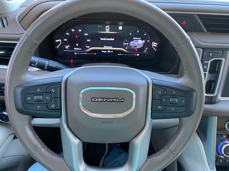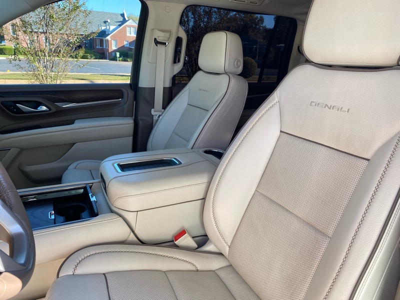 Denali Premium Package, Advanced Technology Package, Max Trailoring Package, Advanced Security Package, Tri-Zone Automatic A/C, Heated And Ventilated Front Power Seats, Second Row Heated Bucket Seats, Heated Steering Wheel, Power Sliding Center Console, Dual Pane Panoramic Sunroof, Adaptive Cruise Control, Rearview Camera mirror, Backup Camera, Wireless Apple Carplay and Android Auto